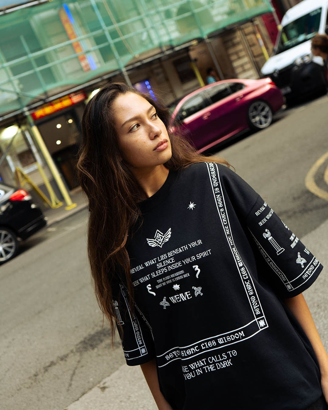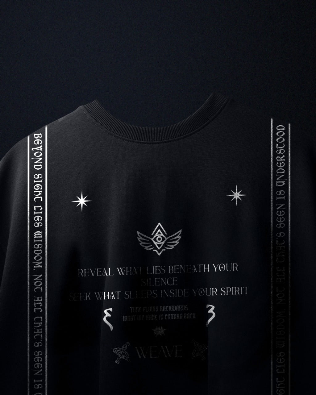 The Beyond Sight Tee is cut from premium 310 GSM interlock fabric, offering a soft yet structured drape with a luxe handfeel. Built oversized with puff print symbology on all sides — this piece speaks in riddles, visuals, and rebellion.