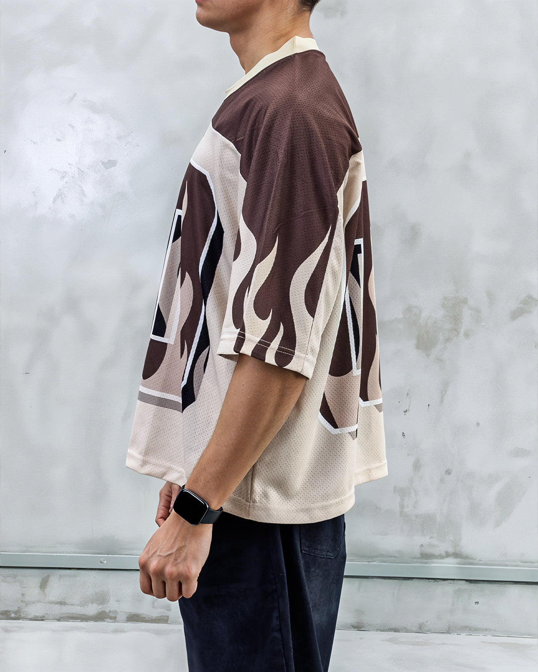 Heat up your style game with Inferno Blaze. This striking brown jersey ignites your style with fiery flame graphics, embodying intensity and passion. Burn bright, wherever you play.